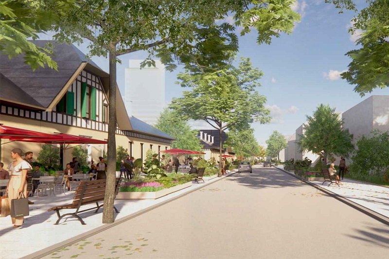 L’assetto complessivo è caratterizzato da un sistema a doppio anello di forma ellittica con giardino pubblico centrale, isolati urbani affacciati su di esso e un anello verde esterno all’edificazione che ricalca il sedime originale della pista del trotto.