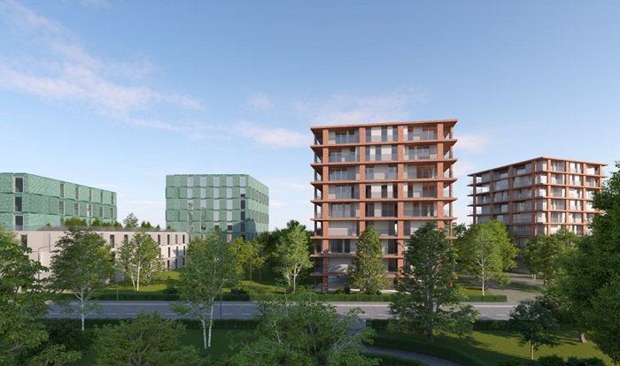 - la realizzazione di quattro edifici: n. 2 edifici a residenza libera di 9 piani con superficie lorda pari a 5.460 mq e n. 2 edifici destinati a residenza per studenti (ERS art. 9 comma 2 lett. b) di 6 e 8 piani, anch’essi con SL pari a 5.460 mq; per questi ultimi è previsto un collegamento a terra mediante un corpo più basso a tre piani contenente le funzioni collettive