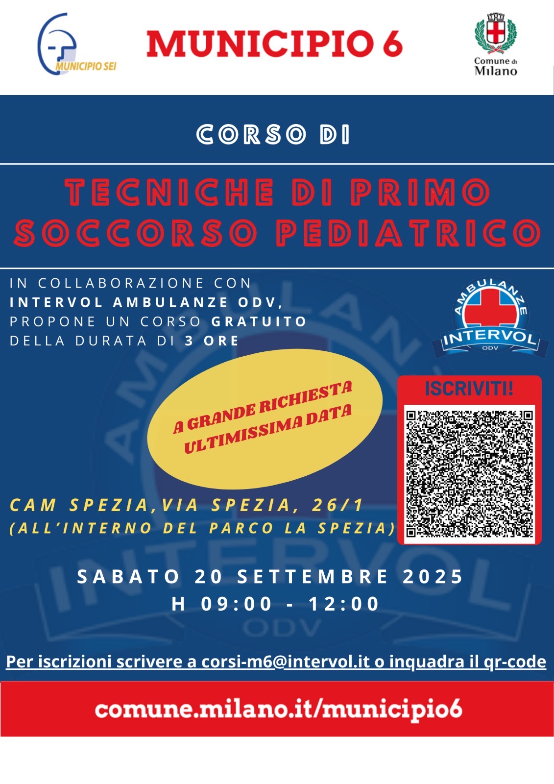 Il Municipio 6 in collaborazione con Intervol ambulanze odv propone un corso gratuito della durata di tre ore sulle tecniche di primo soccorso pediatrico.